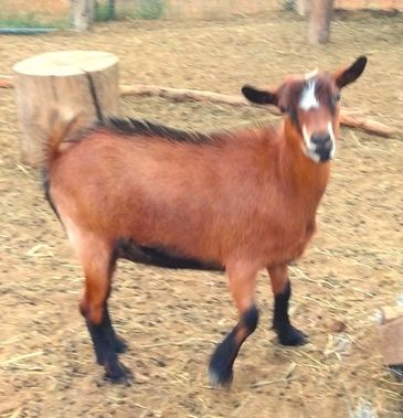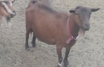 Mia is a friendly doe goat who turned out to be a "hermaphrodite", meaning she is unable to reproduce. She would make a good pet or companion goat and must be allowed to live with at least one other goat (female or a wether).