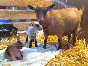 Evie has always been a smaller statured goat. She successfully delivered a singleton first kidding, but it was a tight fit. This year she delivered twins which I anticipated to each be smaller. Nope! This time It was an extremely tight fit. I personally would not recommend risking a third pregnancy. (She's been a great mom. She was sad when I had to separate her intact bucklings from her a few weeks ago.)